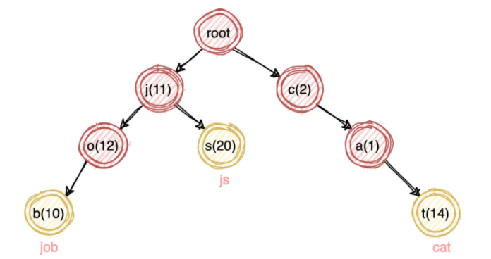 这个 Term Index 我们可以使用这样的 Trie 树,也就是我们常说的字典树来存放。